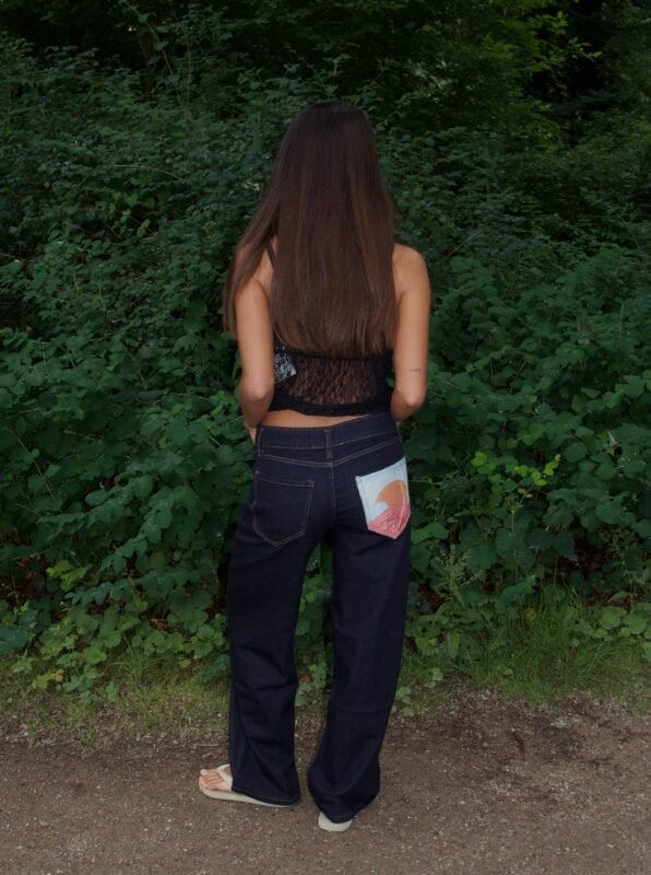 jeans with back pocket print – Dark denim