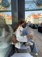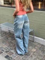 These jeans feature a mid-rise waist and a relaxed. loose fit. They are designed with a zipper closure. as well as slanted side pockets and back pockets. Perfect for both casual days and more formal occasions where comfort and style are paramount. Pair them with a simple T-shirt for a casual look or a shirt for a more sophisticated expression.